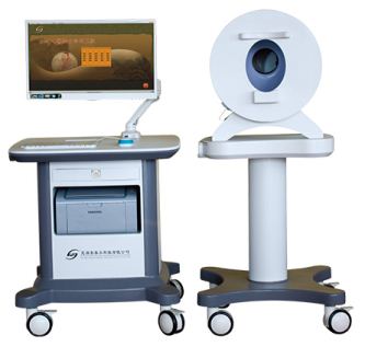 四種中醫(yī)診斷儀根據(jù)中醫(yī)“望文切”中的“望切”判斷患者的身體狀況。首先,體驗者把下巴放在一個白色的儀器上,就像一個折射計一樣,內(nèi)部的照相機(jī)拍下了下半部和舌頭的照片。經(jīng)過數(shù)據(jù)分析得到舌面信息。比如膚色的明快,兩痰是否紅,眼瞼是否黑,舌頭是否紅,苔蘚的厚度是否厚、油膩、腐爛,舌頭又肥又薄,有無齒形、刺痛、開裂。