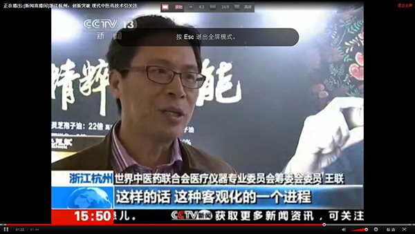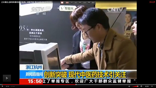 2015全國藥店年度峰會(huì)上我公司王總接受中央電視臺(tái)采訪,就目前中醫(yī)診療設(shè)備及中草藥現(xiàn)代化進(jìn)程發(fā)表自己的見解。