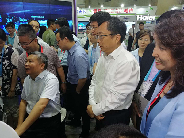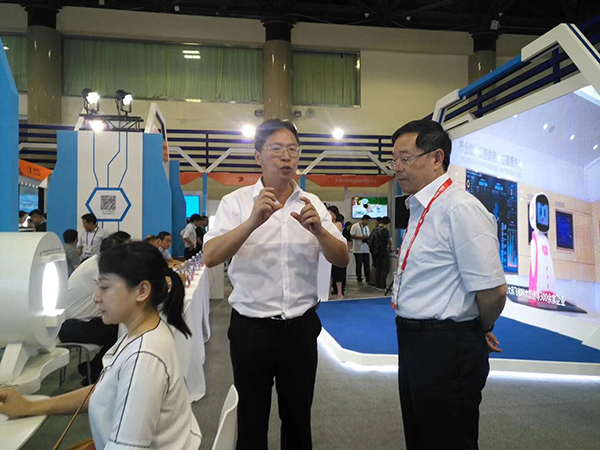 董事長(zhǎng)王聯(lián)向工信部副部長(zhǎng)張克勤介紹公司的中醫(yī)綜合診斷系統(tǒng),中醫(yī)醫(yī)聯(lián)體及中醫(yī)機(jī)器人在全國基層醫(yī)療和養(yǎng)老方面的應(yīng)用情況。