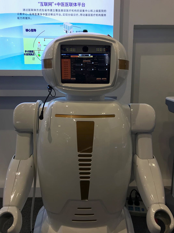 我公司參展的項(xiàng)目為:“中醫(yī)綜合診斷系統(tǒng)、中醫(yī)智能診斷機(jī)器人”。此項(xiàng)成果是由王聯(lián)董事長(zhǎng)領(lǐng)銜的,包括天津大學(xué)王學(xué)民教授、公司技術(shù)部、研發(fā)部等成員在內(nèi)的科研團(tuán)隊(duì)完成。此項(xiàng)成果已取得多項(xiàng)國家。其填補(bǔ)了國內(nèi)中醫(yī)診斷設(shè)備的空白,實(shí)行中醫(yī)標(biāo)準(zhǔn)化、客觀化、智能化,是發(fā)展我國中醫(yī)診療行業(yè)的一大進(jìn)步。這也是我公司以研發(fā)、生產(chǎn)、銷售為一體化發(fā)展模式取得的重要成果。