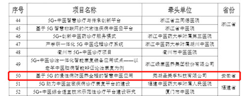 8月17日,中華人民共和國工業(yè)和信息化部官方網(wǎng)站發(fā)布了“5G+醫(yī)療健康應(yīng)用試點(diǎn)項(xiàng)目名單”,由蕪湖圣美孚科技有限公司牽頭,聯(lián)合蕪湖市中醫(yī)醫(yī)院、蕪湖市高科電子有限公司、安徽中醫(yī)藥高等?茖W(xué)校、中國電信股份有限公司蕪湖分公司、天津理工大學(xué)五家單位共同申報的《基于5G的慢性病防醫(yī)養(yǎng)全程的智慧中醫(yī)應(yīng)用》項(xiàng)目成功入選此次應(yīng)用試點(diǎn)項(xiàng)目名單,也是安徽省入選“5G+中醫(yī)診療”方向名單的項(xiàng)目。